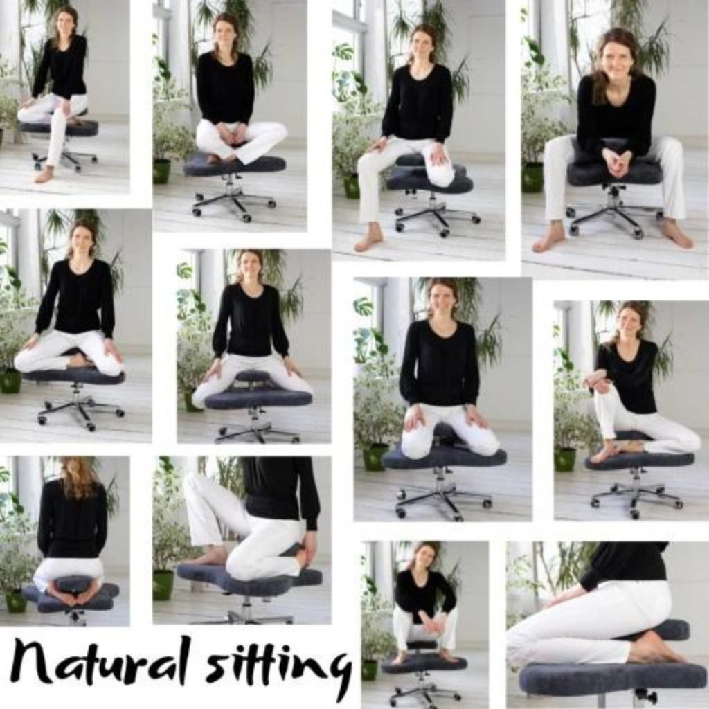 To krzesło z moich marzeń, które daje mi możliwość pracy przy biurku w pozycji klęku, siadu po turecku, w pozycji kucznej i siedzącej jak na zwykłym stołku. Do tego ma ruchomą część, na której siadasz. Możesz poruszać miednicą! No rewelacja!